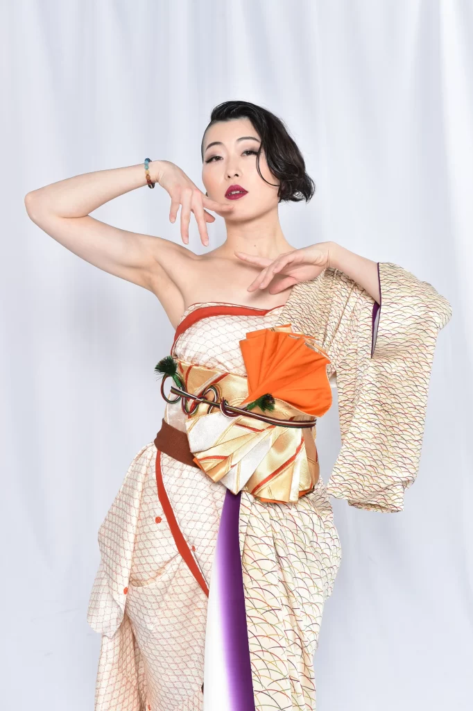 IT営業、ダンサー、モデル、ウォーキング講師など、何足もの草鞋を履く 通称〝踊るキャリアウーマン〟。2021年に設立した「KIMONO×DANCE PROJECT」では〝着物×ダンス=サスティナビリティ〟をテーマに、古着の着物をアップサイクルした衣装のダンスパフォーマンスで注目を集めており、ダンスイベントのみならず企業イベントからの依頼も受けるなど幅広いフィールドで活躍をしている。