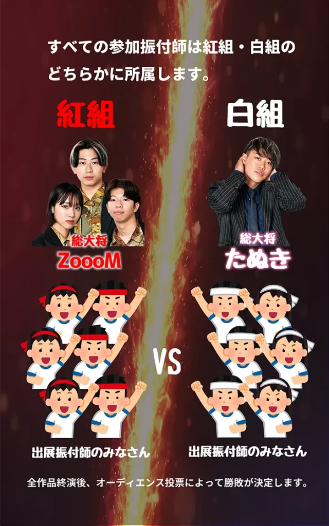 「紅白コレオグラフィ合戦」の大きな特徴の1つ、それは紅組・白組の組分けはコレオグラファーの性別ではなく、事前に両軍の総大将を交えてライブ配信公開で行われた「ドラフト会議」にて決定されていること。その模様のアーカイブ動画を公開。それぞれの総大将のチーム編成戦略の原点がここにある!