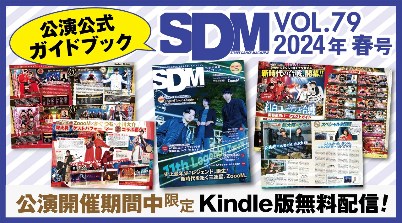 まさに新時代の戦いが連続する『-FINAL LEGEND- 第2回 紅白コレオグラフィ合戦』。その見どころやコレオグラファーが作品に懸ける想い、各作品の出演ダンサー情報、そしてゲスト・インタビューなど、本公演を楽しむための情報がぎっしり詰まった公式ガイドブック「SDM」2024年4月発行号がKindleで公開中!