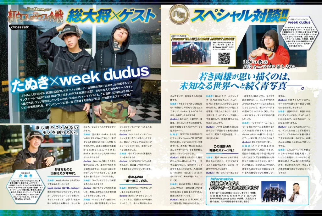 さらになんとYouTube再生回数140万回超を誇る今シーズンのチームタイトル曲「Insane “BLUE”」を作詞・ラップを担当している新世代ラッパー〝week dudus〟(ウィーク ドドス)生ライブとコラボしたこの日限りの特別ショーステージで披露される!