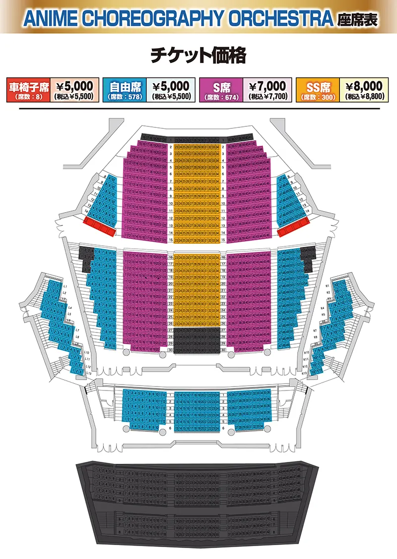車椅子席は1階席中通路近くにございます。販売は公式サイト限定での販売となります。お求めの際は下記リンクボタンよりメールにてご連絡ください。